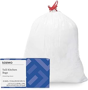 White trash bag with red drawstring closure for easy tying and carrying