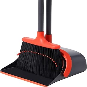 Dustpan Teeth and Flexible Lip: Built in comb teeth for easy to scrape off the hair and rubbish of the broom silk into dustpan , no need to drag by hand, easy to clean human hair/pet hair and dust on the broom, a flexible rubber lip that conforms to surfaces so dust is not swept underneath it.