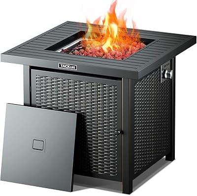 【 What You Get 】 - TACKLIFE Fire Table GFP01, Square Lid, 20 Inch Gas Hose, Lava stone, Product Manual, Warranty Card Table Size : L28" x W28"x H25" , In order to create a beautiful time for you and your family or friends, We promise TACKLIFE fire pit to provide 24 months warranty and professional friendly after-sales service