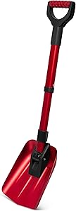 - Lightweight and durable scoop - made from polyethylene and aluminum, this shovel takes nothing to lift and you won't lose fuel mileage by keeping it in your car. It's incredibly tough and weather-resistant.