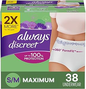 Always Discreet Postpartum Incontinence Underwear, Size S/M, Maximum Absorbency, 38 Count
