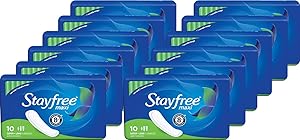 Stayfree Maxi Pads for Women, Super, 10 Count (Pack of 12), Package may vary